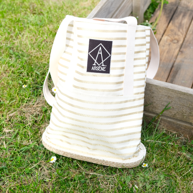 La base du sac est une semelle d'espadrille, facile à poser et surtout protégée, grâce à sa poche intèrieure vous pourrez mettre à l'abri portable et clefs, balade lasai assurée.