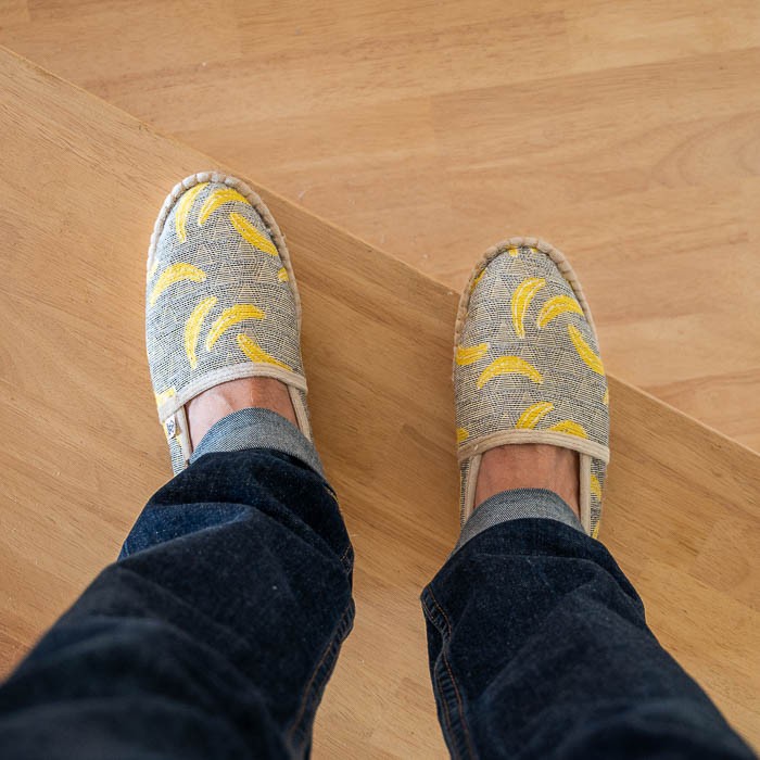 Voici nos espadrilles fourrées imprimé banane ! Un peu de pep's sur vos espadrilles pour cet hiver !